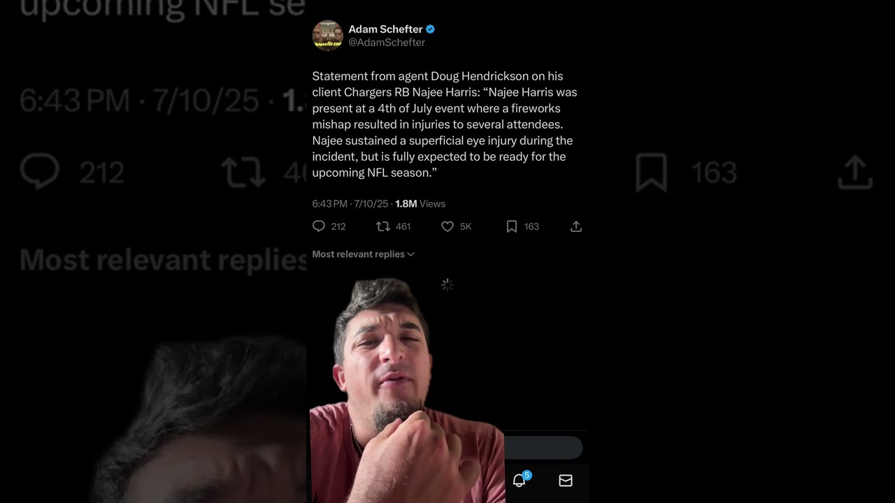 . A vlog by the YouTube channel named in the video’s upper left corner and serves as the news source for this content.Najee Harris is fine! #trending #fyp #tiktok #chargers #nfl #najeeharris #nflfootball #football #nfltiktok #fantasyfootball #losangeles …
