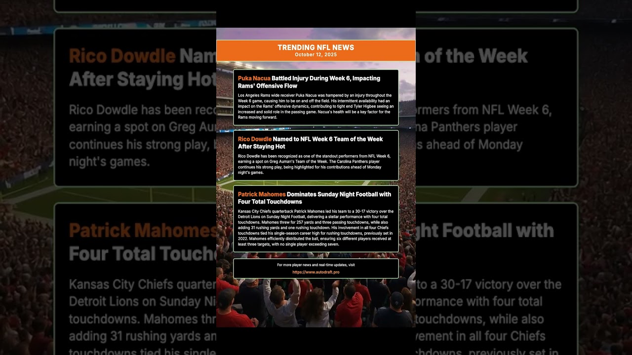 . A vlog by the YouTube channel named in the video’s upper left corner and serves as the original blog post for this content.Trending NFL News for October 12, 2025 Puka Nacua: Puka Nacua Battled Injury During Week 6, Impacting Rams’ Offensive …