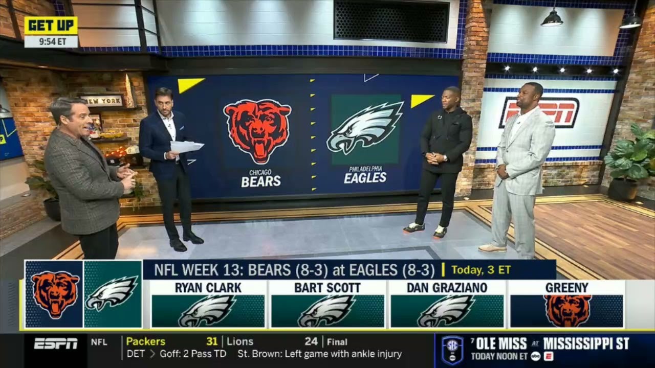 . A vlog by the YouTube channel named in the video’s upper left corner and serves as the original blog post for this content.GET UP | “Jalen Hurts is going to torch Bears D on Black Friday” – ESPN crew picks Eagles dominate NFL Week 13 tonight.