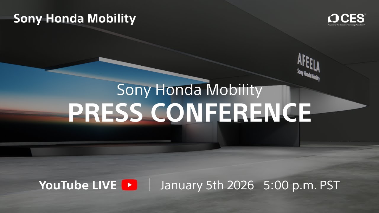 . A vlog by the YouTube channel named in the video’s upper left corner and serves as the original blog post for this content.Join us for the Sony Honda Mobility Press Conference at CES® 2026, streaming live from Las Vegas. During the conference, we will share the latest updates on our first model, AFEELA 1, now presented as a pre-production model, and unveil an all-new concept model. Currently available to reserve, AFEELA 1 will begin deliveries to California customers in 2026. For the version with ASL interpretation, please visit this page : http://spr.ly/6009Ciq5f■Event Time January 5 (Mon.), 5:00–5:30 PM (Las Vegas Local Time) January 6 (Tue.), 10:00–10:30 AM (Japan Time)