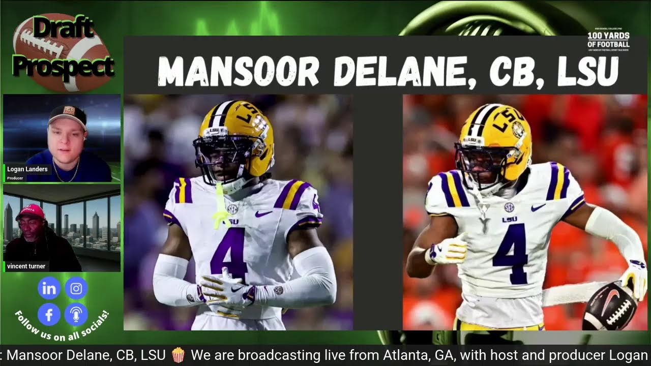 . A vlog by the YouTube channel named in the video’s upper left corner and serves as the original blog post for this content.NFL Draft Prospect: Mansoor Delane, CB, LSU We are broadcasting live from Atlanta, GA, with host and producer Logan Landers …