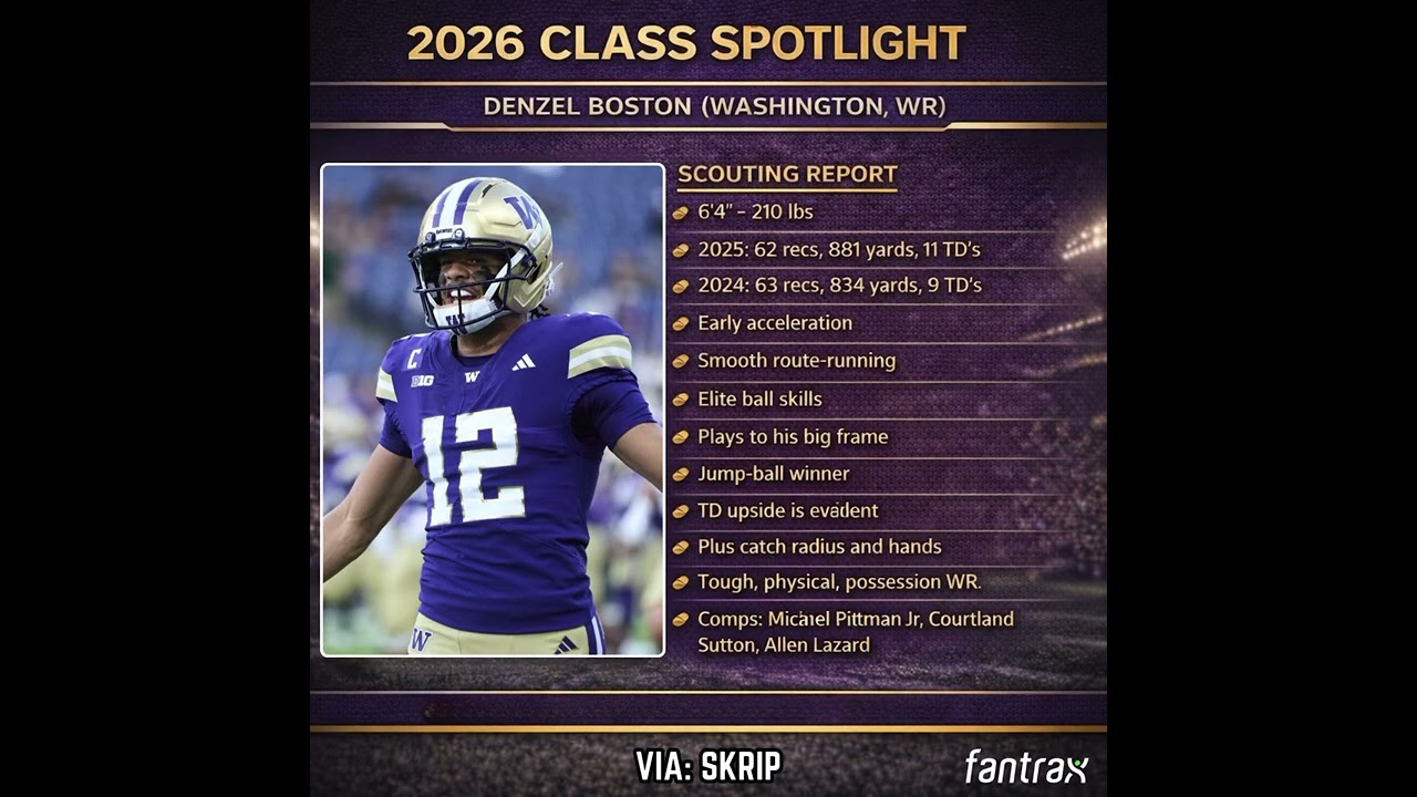 . A vlog by the YouTube channel named in the video’s upper left corner and serves as the original blog post for this content.2026 Prospect Spotlight: Denzel Boston Some mocks have Boston going in the 1st round The big WR could land somewhere and …
