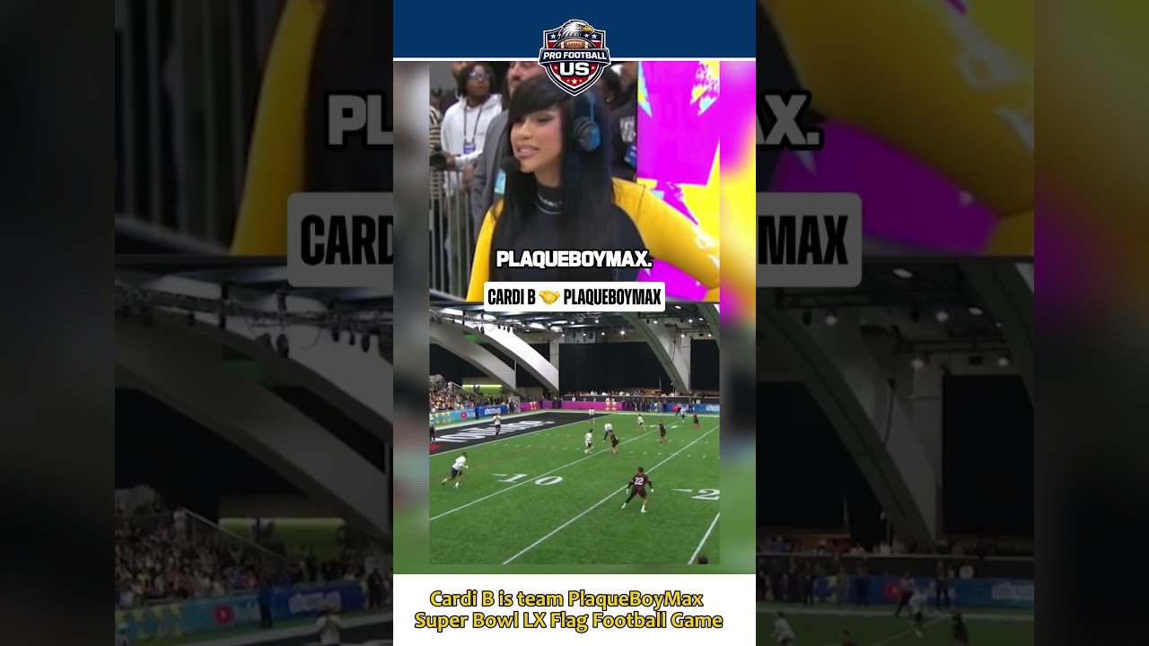 nflnewsbyzennie62.com Presents:Cardi B is team PlaqueBoyMaxSB LX Flag Football Game #cardib #shorts #nfl #superbowl