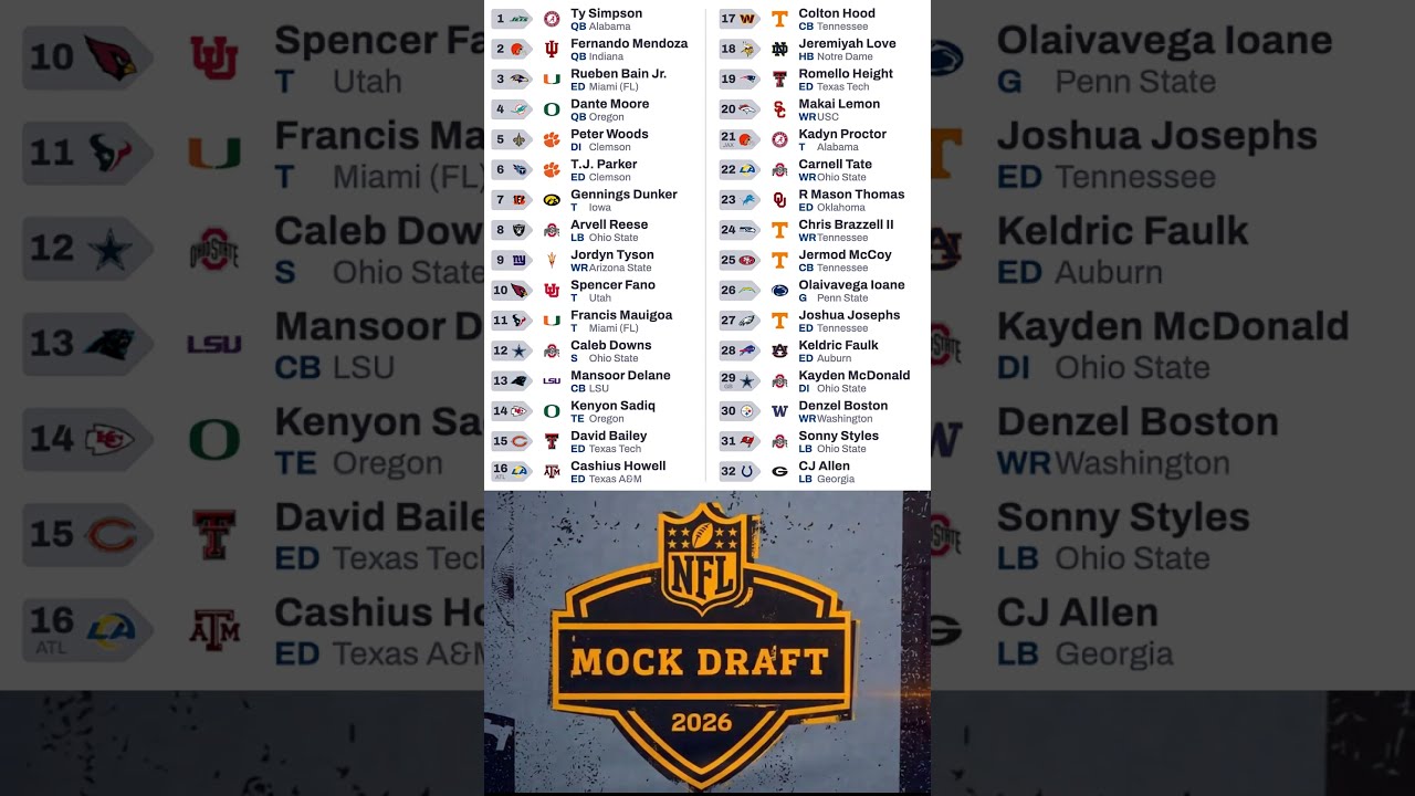 . A vlog by the YouTube channel named in the video’s upper left corner and serves as the original blog post for this content.A way-too-early look at the 2026 NFL Mock Draft! Which teams land the top prospects and who goes #1 overall? Let us know if …