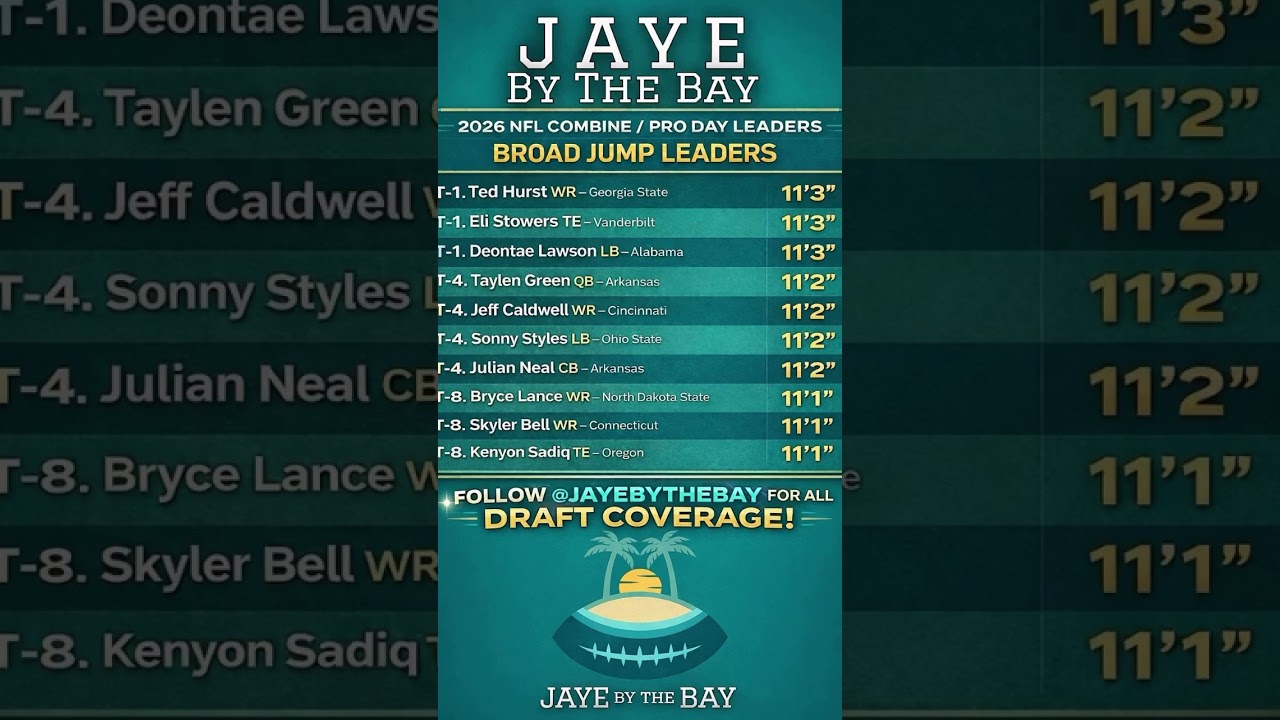 nflnewsbyzennie62.com Presents:2026 NFL Combine & Pro Day Broad Jump Performers