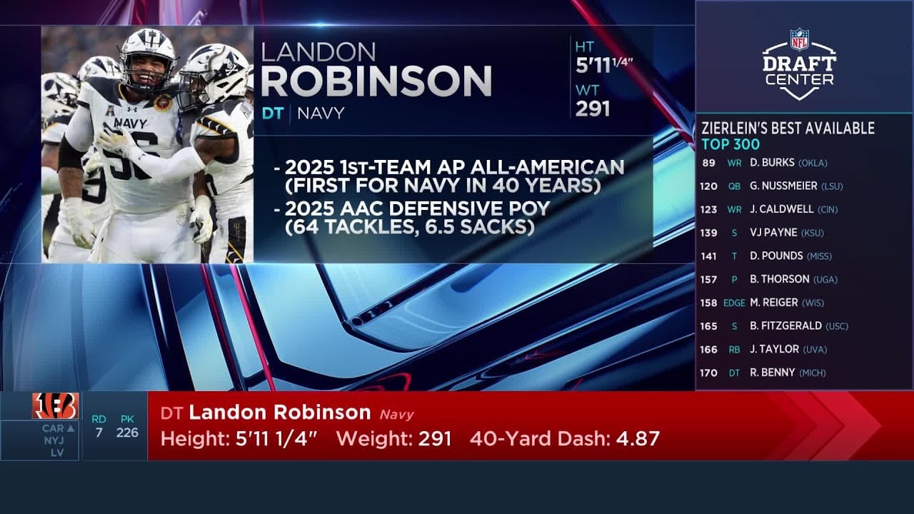 nflnewsbyzennie62.com Presents:The Cincinnati Bengals Select Landon Robinson with the 226th Pick in the 2026 NFL Draft